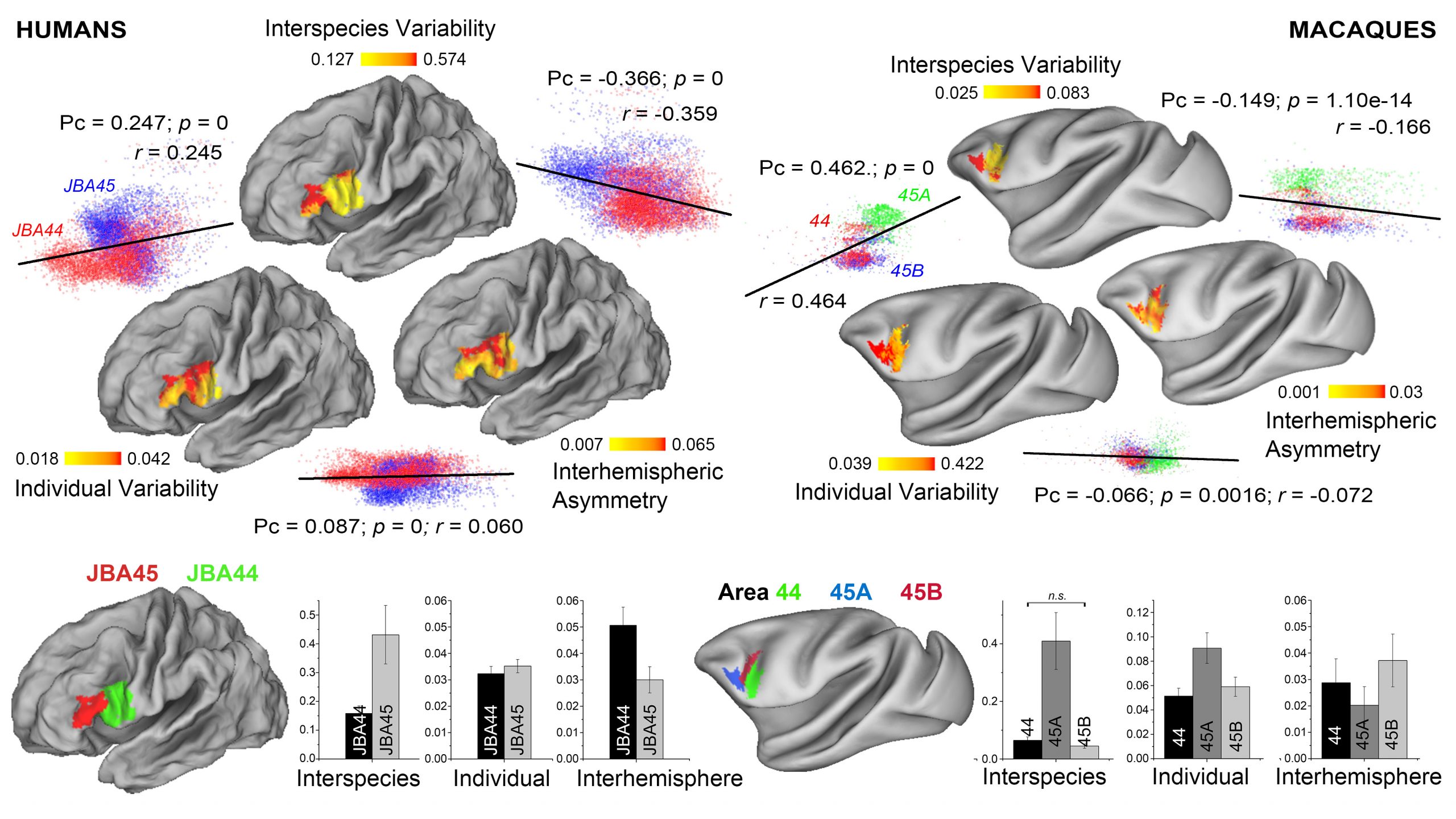 布羅卡區域結構連接的物種間、個體間、腦半球間差異以及它們的相關性