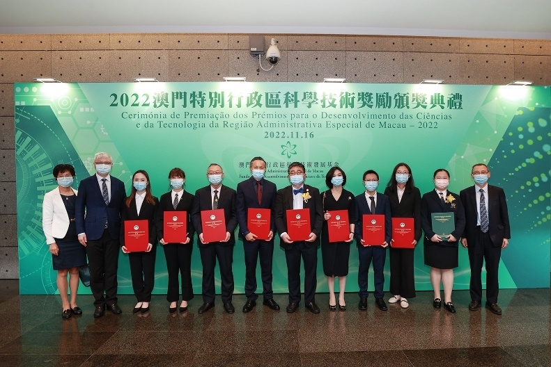 2022年「澳門科技獎」頒獎典禮於11月16日假澳門文化中心綜合劇場隆重舉行。 經濟財政司司長李偉農、中央人民政府駐澳門特別行政區聯絡辦公室經濟部副部長黃聖彪、國家科學技術部港澳台辦公室副主任徐捷、科學技術發展基金行政委員會主席陳允熙以及澳門科學技術獎評委代表等出席了儀式,並爲澳門科學技術獎勵獲獎者頒獎。