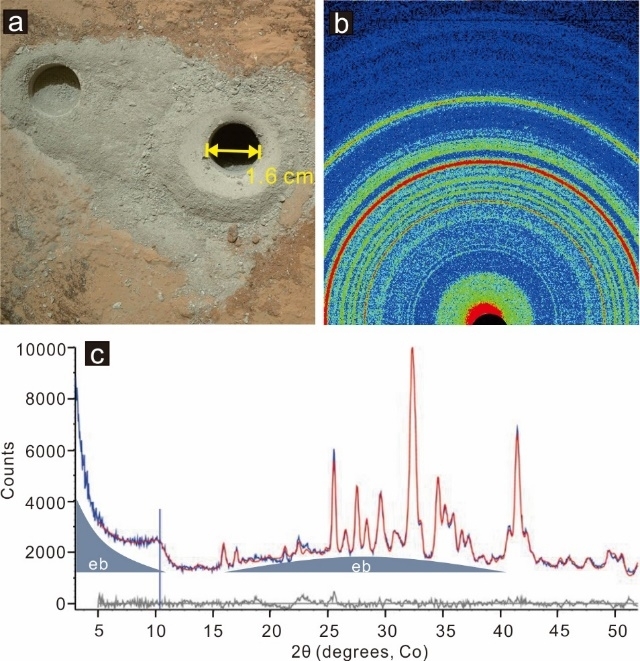 圖5 蓋爾隕石坑中一名為John Klein的泥岩鑽取樣的X射線衍射圖