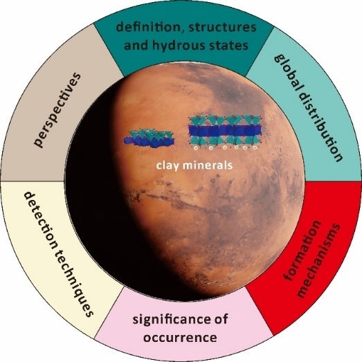 火星粘土礦物記錄了火星上的水-岩相互作用歷史,是最重要、也是關注度最高的一類礦物。它們的種類、豐度和地質產狀可提供有關火星地質演化過程及相關古環境、火星(過去)生命宜居性等信息。因此,人類自對火星進行科學探測以來,一直高度重視對火星粘土礦物的探測和研究,迄今(尤其是近二十年來)也已取得系列重要進展。然而,由於在不同階段所利用的技術種類不同(即使對於同一技術,其採集數據的質量也不斷提升),加之數據處理理論和方法也在不斷迭代以及至今未能將火星樣品返回地球等原因,目前關於火星粘土礦物的認識仍存在很多不一致甚至相互矛盾、或亟待更新或進一步研究之處。
