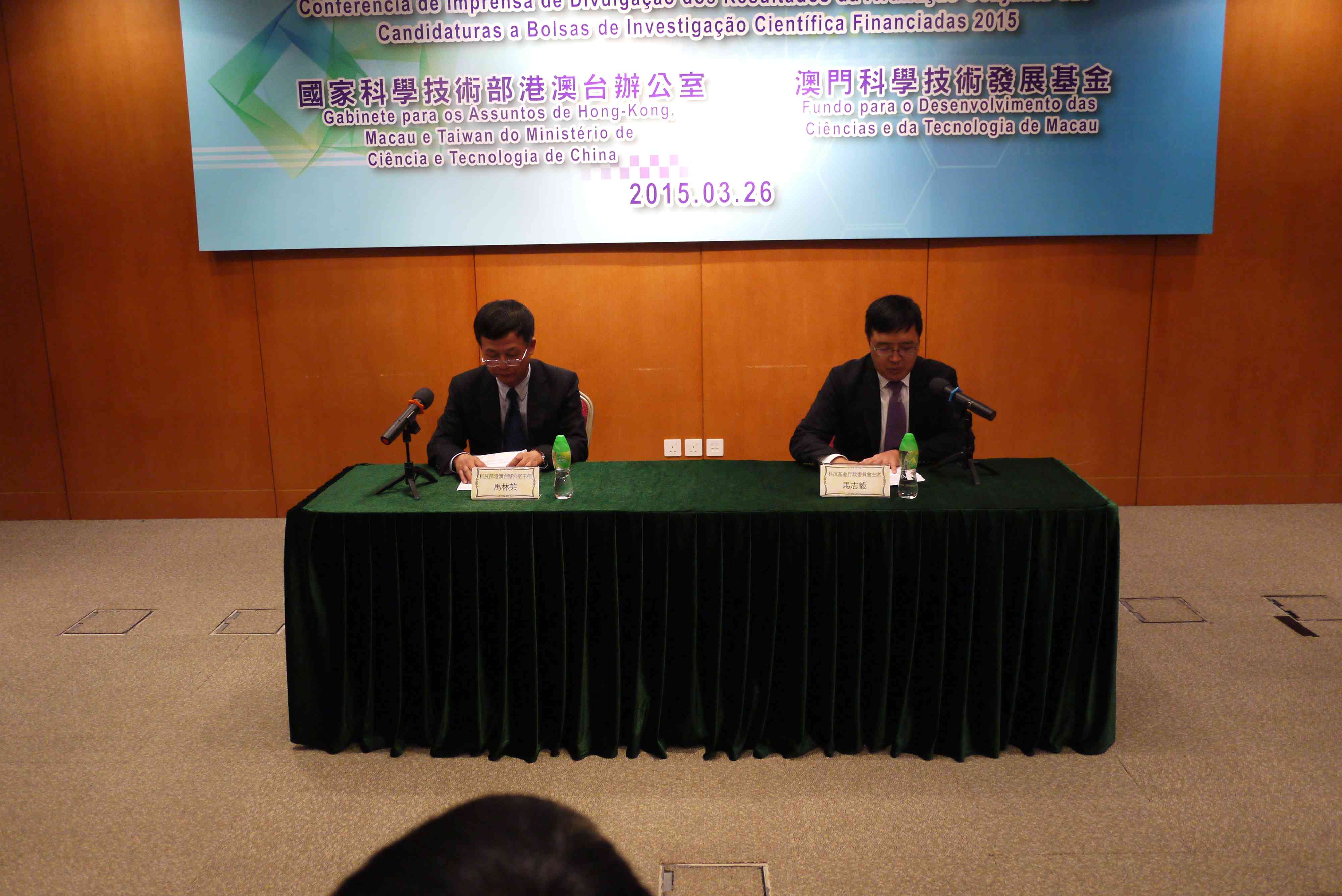 本年度聯合科研資助評審結果發佈會於3月26日假科學館會議室舉行,運輸工務司司長羅立文,國家科技部副部長張來武、港澳台辦主任馬林英,廣東省珠海市副市長王慶利,科技基金行政委員會主席馬志毅,澳門大學科技學院院長陳俊龍,科技大學協理副校長姜志宏等出席。
