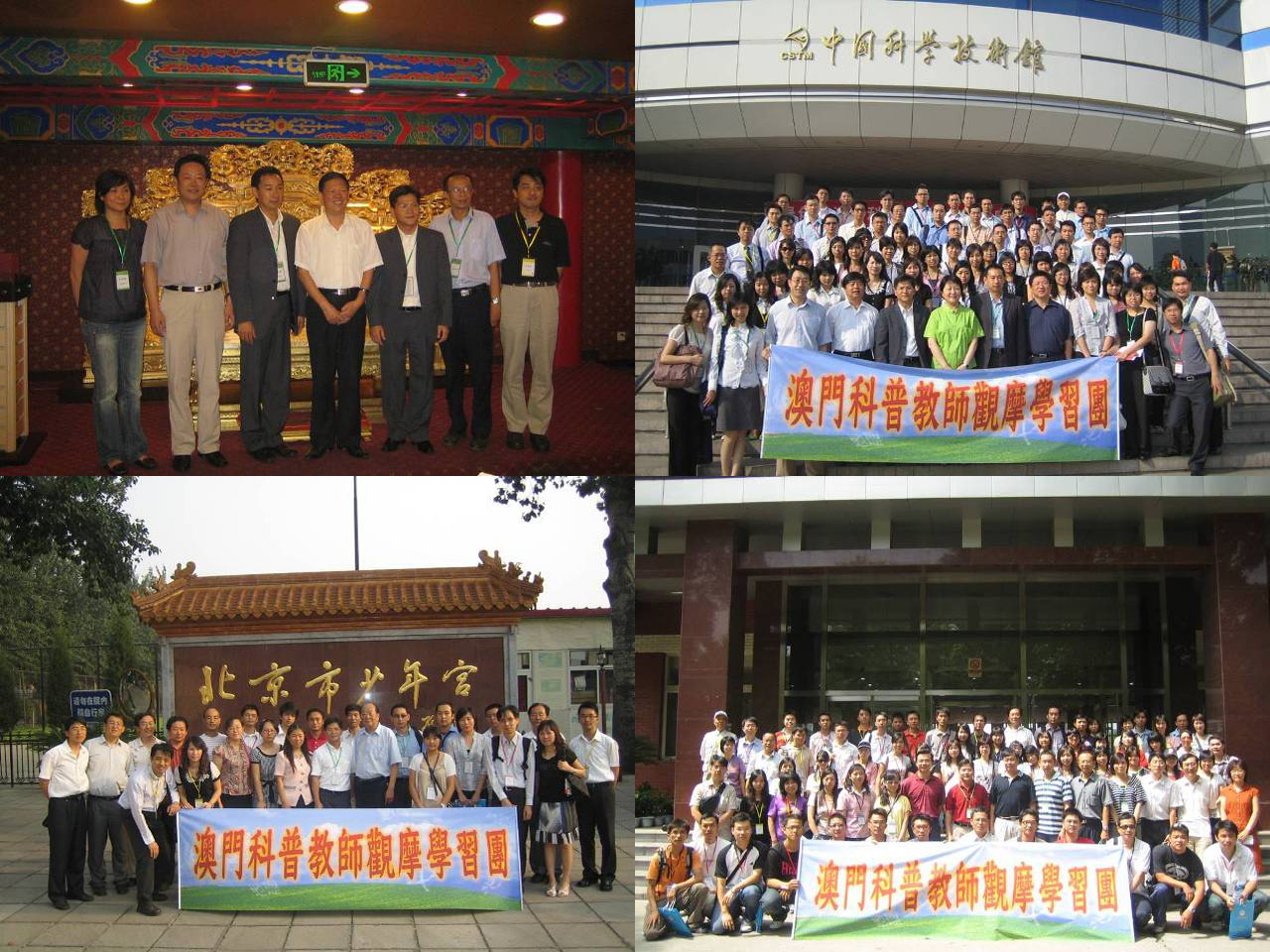 8月21日上午於北京中國科技館進行開班儀式,並由中國科學技術協會程東紅書記主持及以題「為了每一個學生的明天」作報告,談到如何對待科學教育的目標、內容和方法提出的新問題,並表示中國科技團體願與教育界攜手推進科學教育的發展,並對澳門科普教師對社會作出的貢獻表示由衷的謝意。國家教育部基礎教育司學校活動處呂同舟處長於會上亦作了關於「青少年科學教育與青少年科技活動的開展」報告。觀摩團團長鄭冠偉於致詞時說,這次觀摩學習能在北京和天津順利進行,有賴中科協、天津市科協、中國教育部及中國科技館的大力支持和協助,同時表示科普教育是澳門特區十分重視的科技政策之一,選北京和天津作為首次觀摩學習的培訓地點,是希望透過內地的高新科技和人才力量,提升澳門科普教師的科學教育素養和指導學生科普活動的能力,推動學校科普更上一層樓。報告會後團員參觀了中國科技館。觀摩團下午參觀北京市少年宮,由北京學生活動管理中心主任、北京市青少年科學技術館館長孫榮燕及北京市科學技術協會青少年工作部部長李海寧接待。觀摩團觀看了學生的科普活動及與北京優秀科技教師交流。