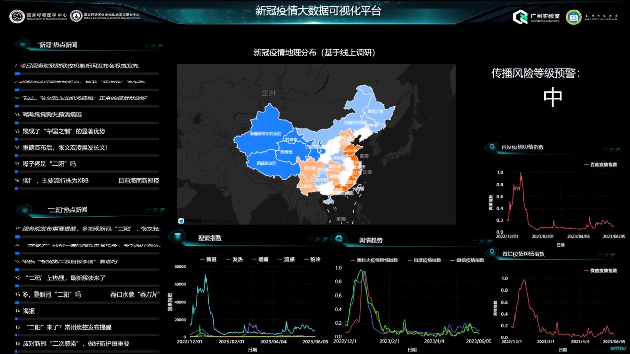 面向國家流行病防控的重大需求,科研團隊依托位於橫琴的珠海澳科大科技研究院,與廣州實驗室、廣州呼吸健康研究院和廣州金域醫學檢驗中心有限公司聯合,開展人工智能預測預警系統構建。通過整合經典傳染病動力學模型和研發多種人工智能算法,建立了先進的新型冠狀病毒流行預測預警系統,做到有效捕捉疫情的動態發展,為疫情提供預警及風險評估,應用服務於國家和地方的疫情防控工作中,為疫情防控策略提供理論支撑。